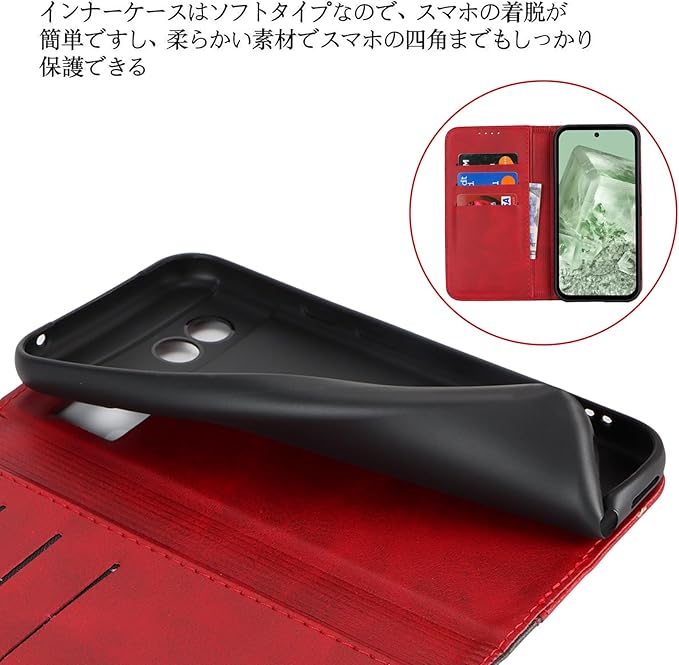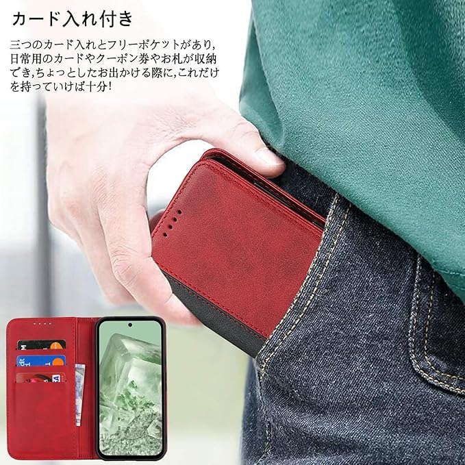 Google Pixel 8a ケース 手帳型 pixel8a au docomo ドコモ SIMフリー softbank 全対応 手帳型ケース グーグル ピクセル 8a カバー スマホケース 手帳ケース pixel8A 携帯ケース case 適用 カードケース iCoverCase 合成皮革 内蔵マグネット 携帯カバー スタンド機能 落ち着いた色 2色組合せ レトロ レッド | KAZESHOP