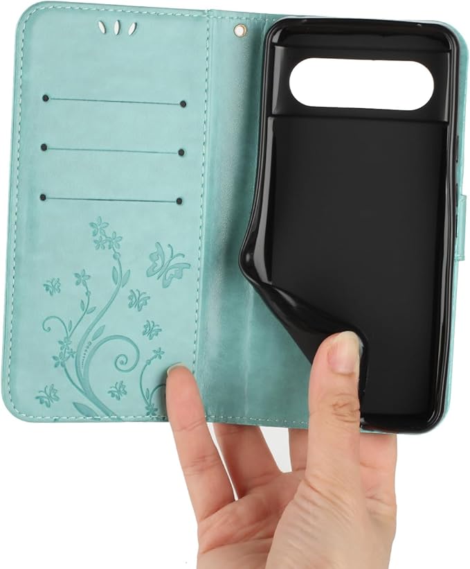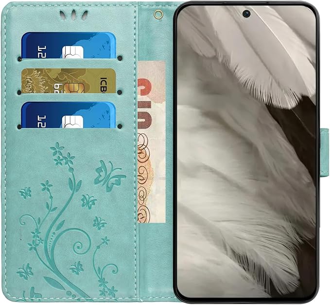 Pixel 8A 手帳ケース キラキラ きれい 純色 バタフライ胡蝶の印 TPU 花柄 カード入れPixel 8A 財布カバー マグネット式 スタンド機能 横開きスタンド 保護 グーグルピクセル8A ケース手帳型 ストラップ付き 装着やすい タッチペンプレゼント (グリーン) | KAZESHOP