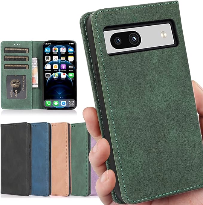 Google Pixel 7a ケース 手帳型 【 ストラップ 一本付 】 適用 Google Pixel7a ケース GooglePixel7a スマホケース Google ピクセル7A グーグル ピクセル7A カバー case Heofuixt 滑り止め 合成レザー スタンド ストラップ付き 窓口式 カード入れ マグネット 手帳ケース カードケース カバー 落ち着いた色ケース レトロ グリーン | KAZESHOP