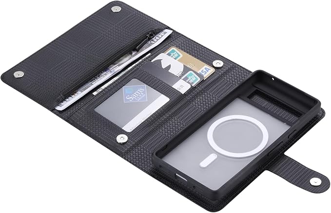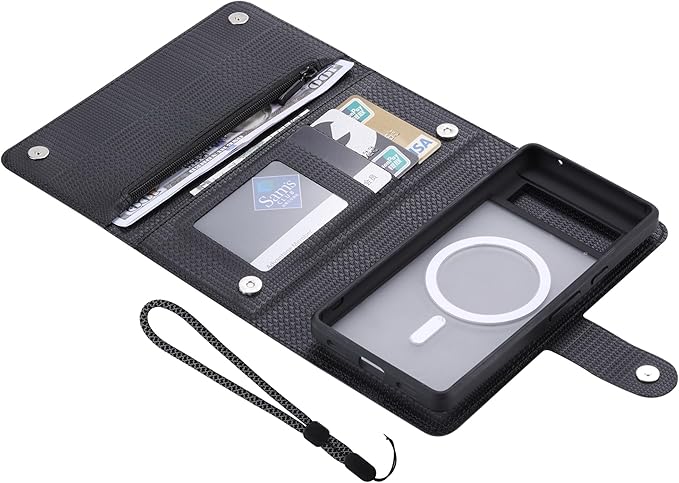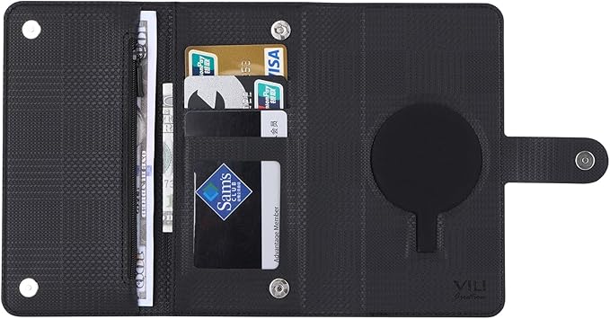 お財布部分とカード収納部分はマグネットでしっかり閉じられるため、スマートフォン操作中にカード等を見られることがありません。
