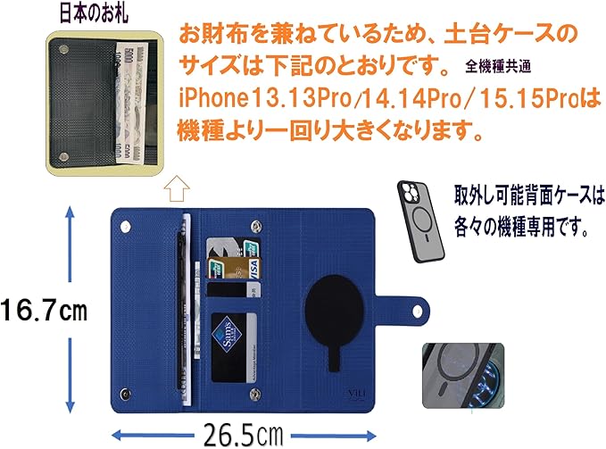 マグネット式取外し可能手帳型ケースです。