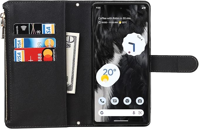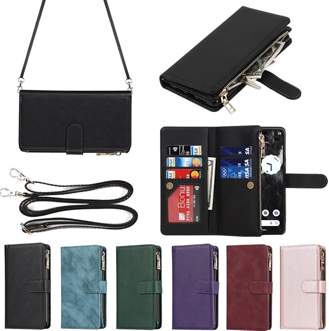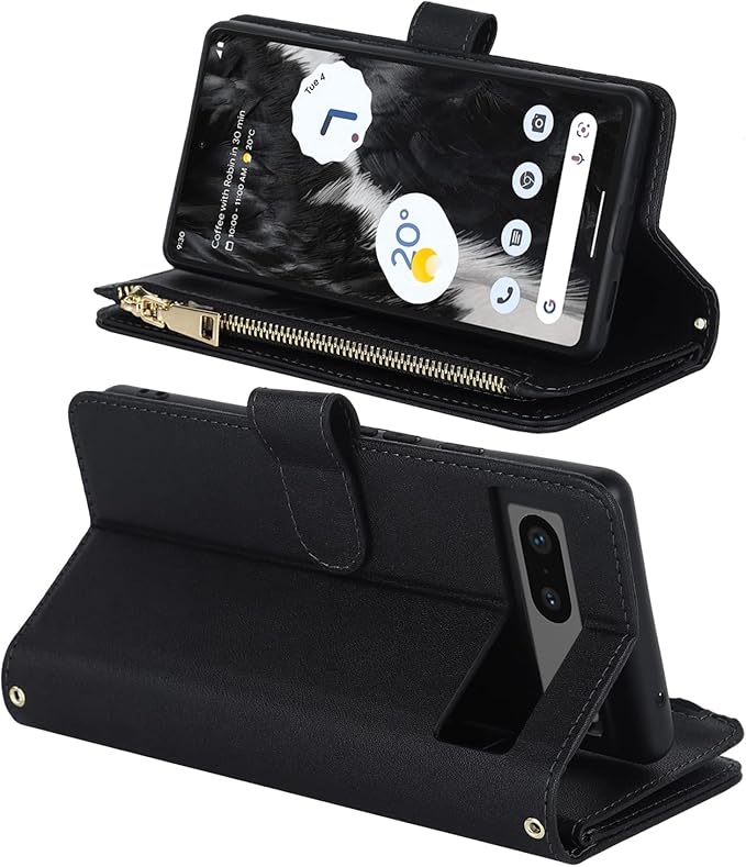 Eastwave for Google Pixel 7A ケース for pixel 7a google 縄掛けケース Pixle7A 手帳型 財布型 ICカード コインポケット ストラップ付き カード 収納 小銭入れ ファスナーポケット付き PUレザー 6色ブラック | KAZESHOP