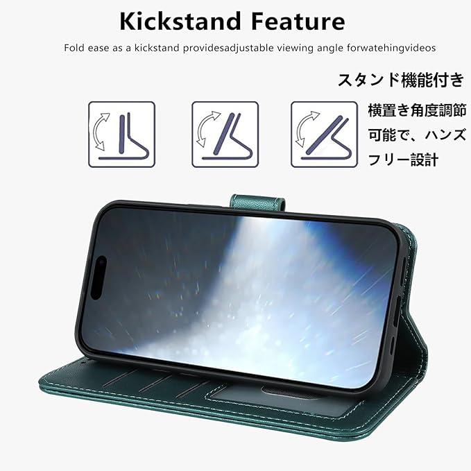 【フリースタンド機能で両手解放】:専用折り目がスマホを横向きに傾けて設置でき、動画視聴やオンライン会議をハンズフリーで快適に。両手が自由になり、実用性と利便性を両立。