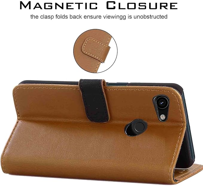【Anrek】Google Pixel 3a docomo/SoftBank 兼用 ケース 手帳型 カバー (ブラウン) ドコモ ソフトバンク ピクセル3a pixel3a 手帳型ケース カード収納 サイドマグネット スタンド機能付き 全面保護 財布型 PUレザー シンプル ビジネス風Pixel 3a KHAKI | KAZESHOP