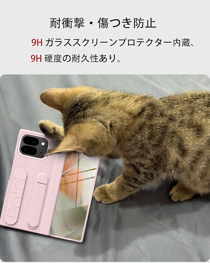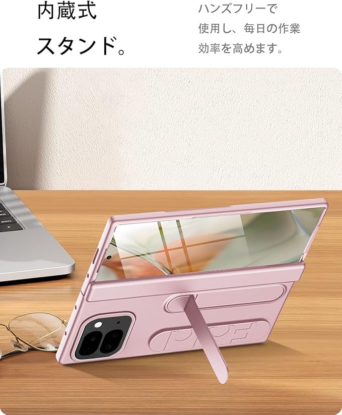 Miimall 対応google pixel 9 pro fold ケーススタンド付き リストストラップ 強化ガラス膜 薄型 ヒンジ保護 カバー Pixel Fold 2 case バンパー 携帯便利 レンズ保護 全面カバー スマホカバー ピクセル9 プロ フォールド ケース (ピンク) | KAZESHOP