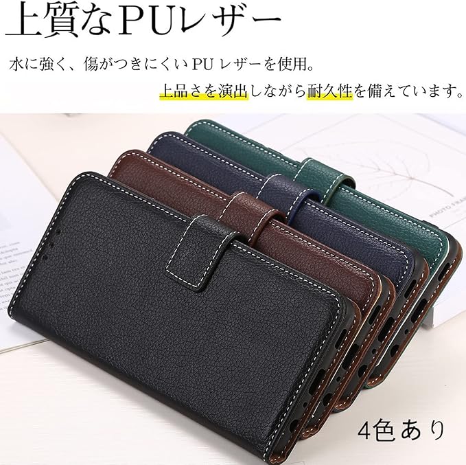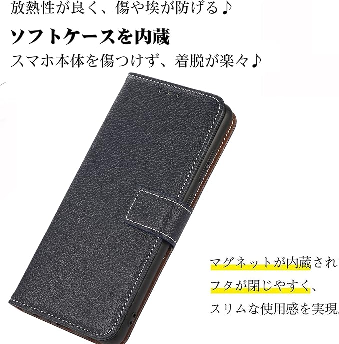 高品質なTPUとPUを利用することで良い手触りと耐衝撃性を実現 ●外部は上質なPU革素材を採用、傷や汚れが目立ちにくく長く使え、放熱性にも優れています。●本体を固定するカバーはTPU素材のソフトケースなので脱着が簡単。ポリカーボネートの固い素材ではないので、脱着時に本体を傷つける心配がなく、落下時にカバーが破損することも無いので安心してご利用いただけます。●レザーのカバーはTPUケースよりも少し大きめに設計されており、どのような落下でも、衝撃が直接スマートフォンに伝わらないので安心です。