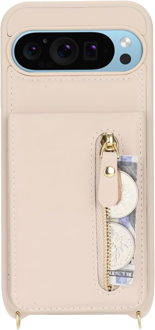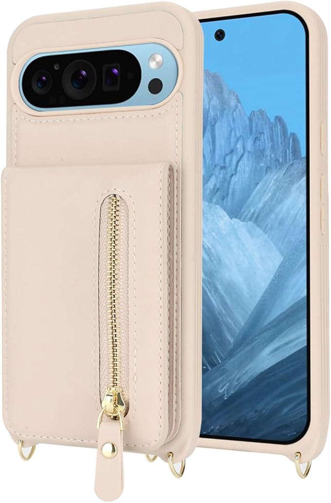 Google Pixel 9 Pro XL ケース ショルダー ストラップ付き ショルダーケース 背面フリップ 上下開 手帳型 Google用 pixel9proXL docomo au SIMフリー softbank 全対応 グーグル ピクセル9プロXL カバー case 適用 iCoverCase カード収納 縦置き スタンド 肩がけ 首掛け 斜め掛け 携帯カバー ベージュ | KAZESHOP