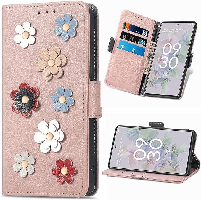 【健康安全なPUレザー|女性向けオシャレケース】オシャレの花柄、女性向けオシャレケース。表面はPUレザーを使用、手触りが良い、滑り止め、耐久性、快適、通気性の特性がある。長時間使用の間、手汗が出て来てもケースは変な匂いはございません。インナーケースは衝撃吸収に優れたPC素材を採用するので、Google Pixel 6Aをしっかり保護してくれます。