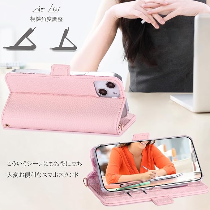 「多機能&軽量」;重さ約75gの軽さ、女性でもお持ちやすいサイズ。カード収納と紙幣スロットが便利でこれ一つでお財布代わり可能です。ベルトの邪魔がなくてスタンド機能の動画視聴も快適です。