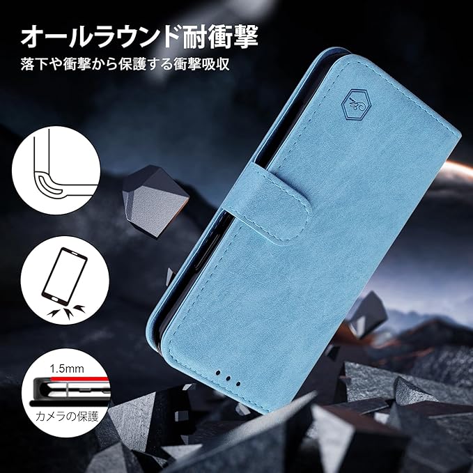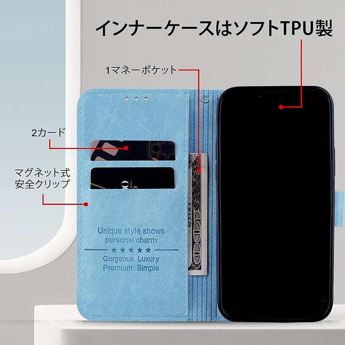 【対応機種】Google Pixel 8 Pro専用。外装には高品質なPUレザー素材を使用し、内装には柔らかいTPU素材を採用しており、優れた手触りと放熱性を提供しています。スマートフォンケースは平らにフィットし、緩まず、変形しません。