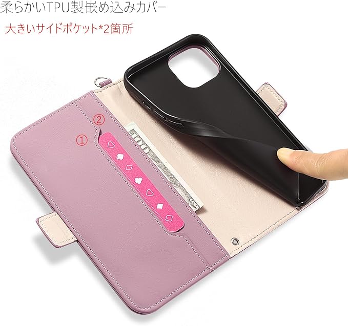 商品のお色はお客様のPC環境によって多少色合い、見え方など違ってまいります。またおスマホの機種によってカードホルダーとカードポケットのサイズは異なりますのでご了承下さいますようお願いします。