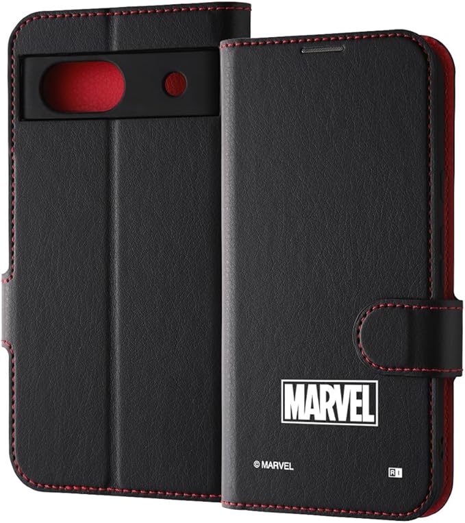 内側にはカードポケットの付いた薄くてスリムなレザーに、『マーベル』のデザインが施された手帳型Google Pixel 8a 用ケース。マグネット式フリップが付いているのでケースの開閉が簡単に行えます。 ストラップホール付き ワイヤレス充電対応