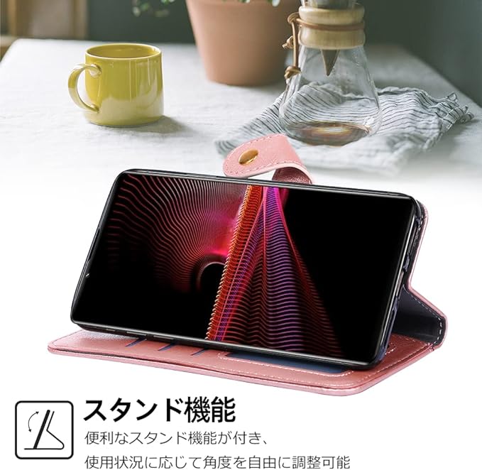 【耐衝撃性】耐熱性と柔軟性を誇るPUレザーから作られ、滑りにくい、指紋・油汚れなどもつきにくく、手帳型ならではの全面保護機能で裏面はもちろん、画面もしっかりガードします。