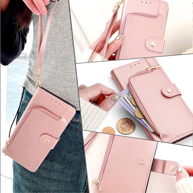 For Google Pixel 9/Google 9 Pro ケース 財布型 For グーグル ピクセル9 プロ 手帳型 ストラップ付き 小銭入れ 大容量 2枚カードスロット 1枚の写真スロットスタンド機能 1つのジッパーポケット 防落・防コケ・防ひび PUレザー プレゼント COCOCLOUD ピンク | KAZESHOP