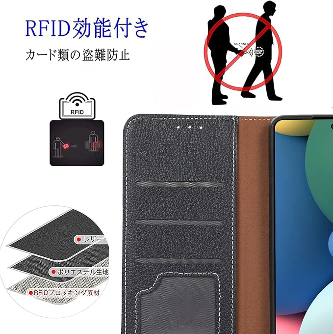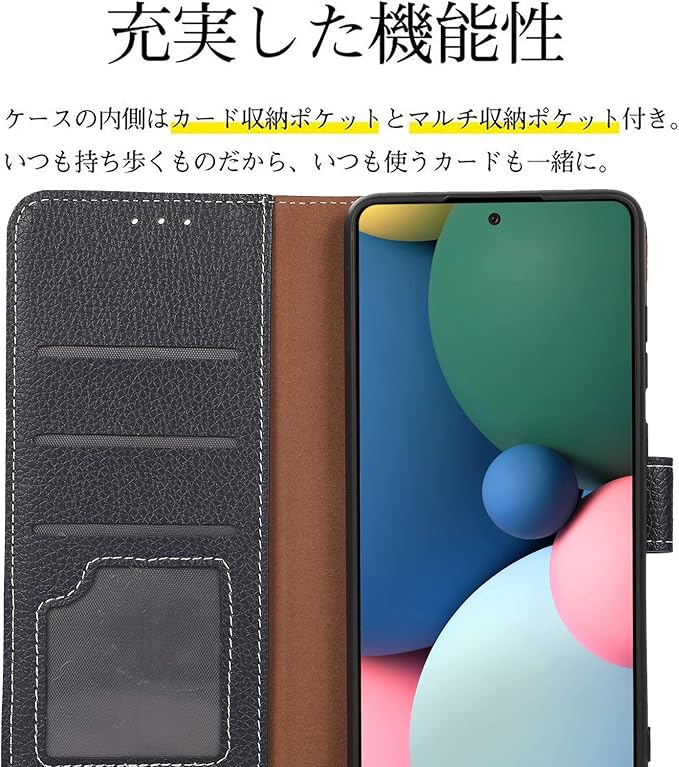 高品質なTPUとPUを利用することで良い手触りと耐衝撃性を実現 ●外部は上質なPU革素材を採用、傷や汚れが目立ちにくく長く使え、放熱性にも優れています。●本体を固定するカバーはTPU素材のソフトケースなので脱着が簡単。ポリカーボネートの固い素材ではないので、脱着時に本体を傷つける心配がなく、落下時にカバーが破損することも無いので安心してご利用いただけます。●レザーのカバーはTPUケースよりも少し大きめに設計されており、どのような落下でも、衝撃が直接スマートフォンに伝わらないので安心です。