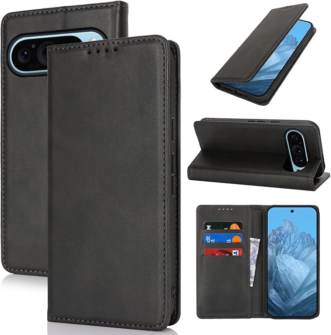 Pelanty Pixel 9/ 9 Pro ケース Google pixel9 手帳型ケース グーグル ピクセル9/9 pro 携帯カバー レトロ 合成皮革 + TPUケース 内蔵マグネット pixel 9 pro 財布型カバー カードポケット 収納ポケット 横置きスタンド機能 スマホケース 汗や指紋防止 軽量 薄型 耐衝撃 耐摩擦 着脱しやすい ブラック | KAZESHOP