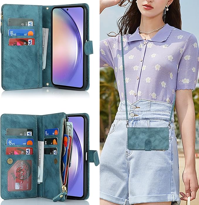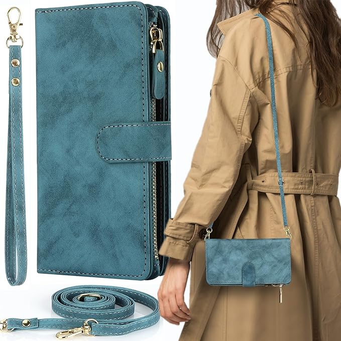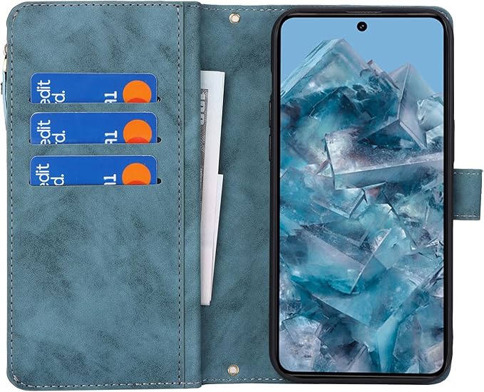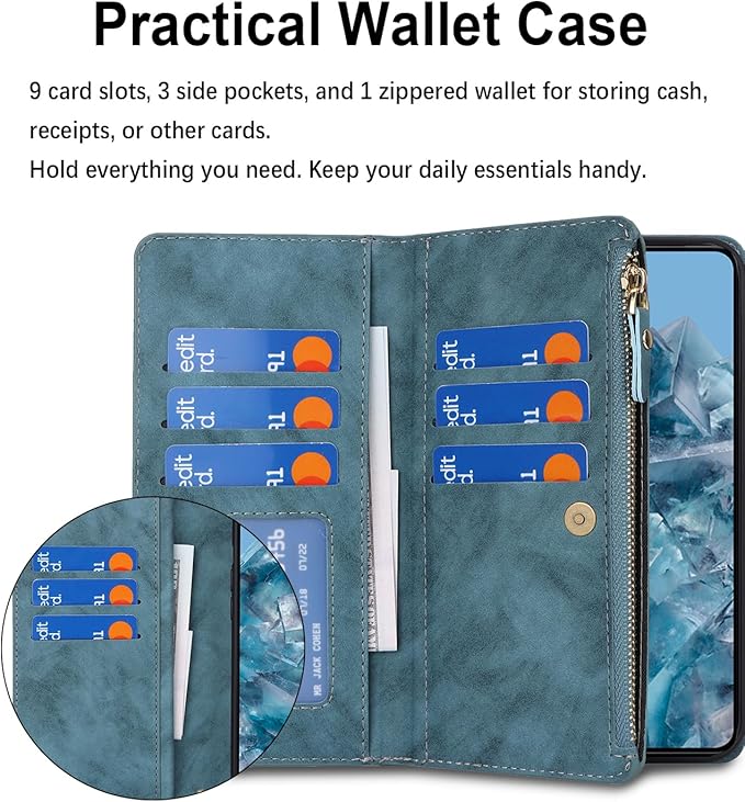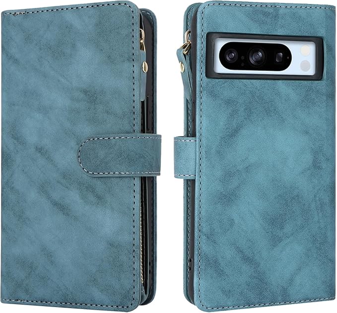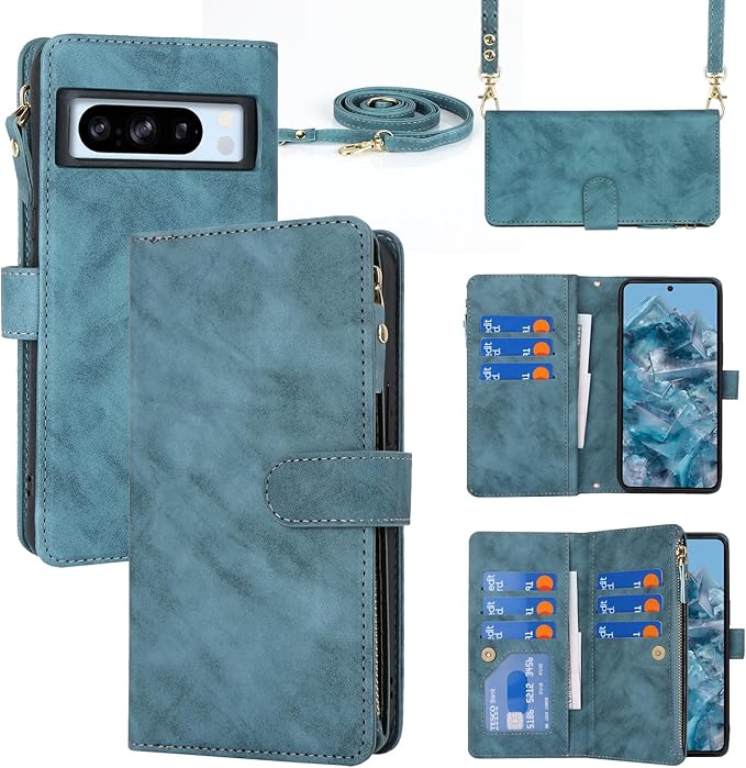 Google pixel 8 pro ケース 手帳型 ショルダー ストラップ pixel8 pro SIMフリー softbank au 対応 ピクセル 8pro 8プロ グーグル ピクセル8pro pixel8pro 財布 適用 CASE iCoverCase マグネット 斜め掛け カードケース ストラップ付き カバー ショルダーケース スマホケース 携帯カバー レトロ ブルー ターコイズ | KAZESHOP