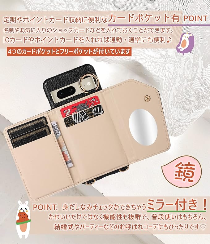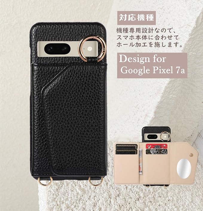 Google Pixel7A ケース ショルダー ストラップ FASY グーグル ピクセル7 カバー Google Pixel 7 スマホケース ショルダー タイプ ミラー 鏡付き グーグル ピクセル 7 スマホストラップ 肩掛け 背面手帳型 財布型 かわいい おしゃれ 革 耐衝撃 レザー スマホ 携帯 ケース ショルダーGoogle Pixel7A スマホ 携帯 ケース ショルダー 斜め掛け リング付き 首掛け ストラップ ブラック | KAZESHOP
