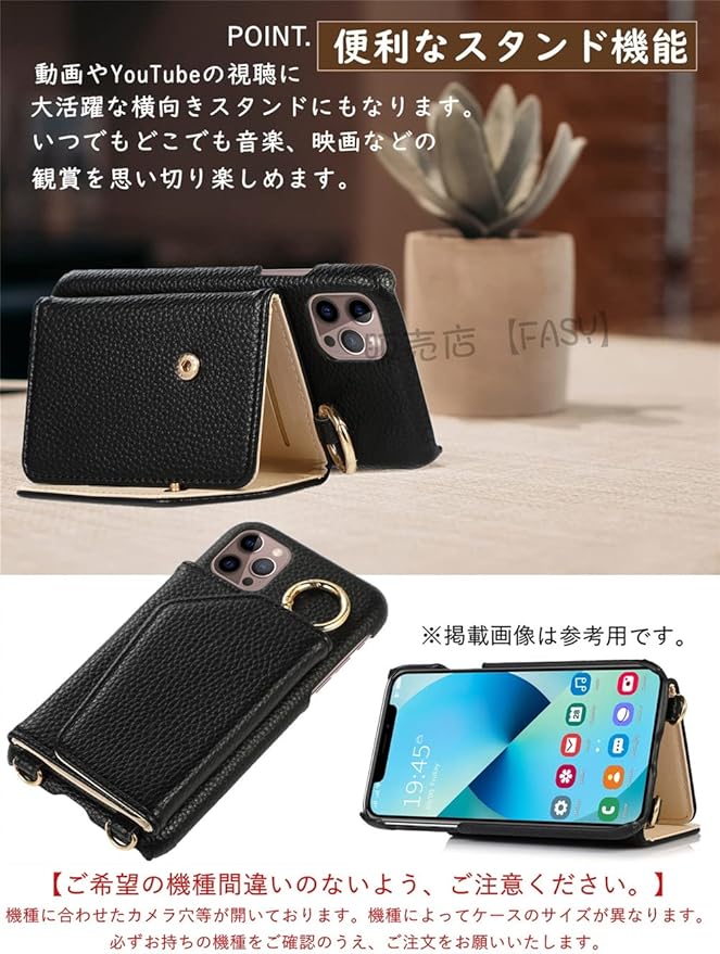 ● 商品名:スマホケース、ミラー機能、カード収納、ショルダーバックの多機能ケース。