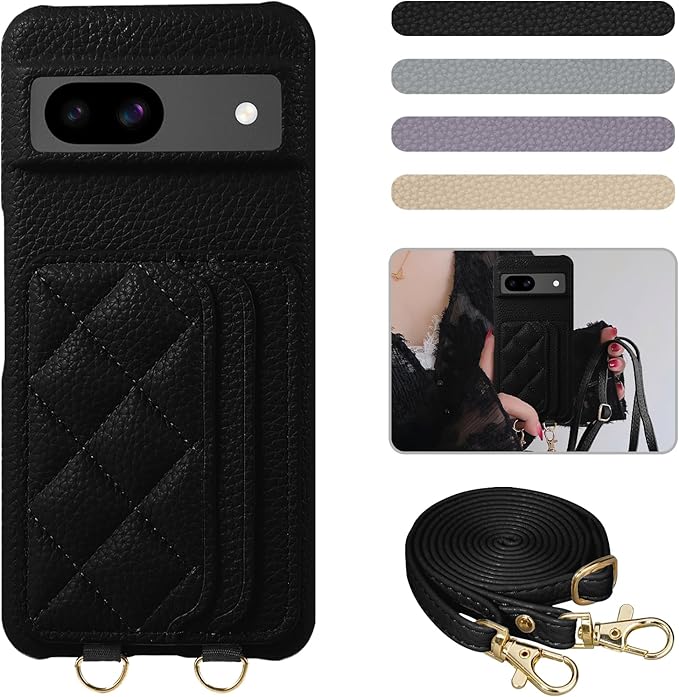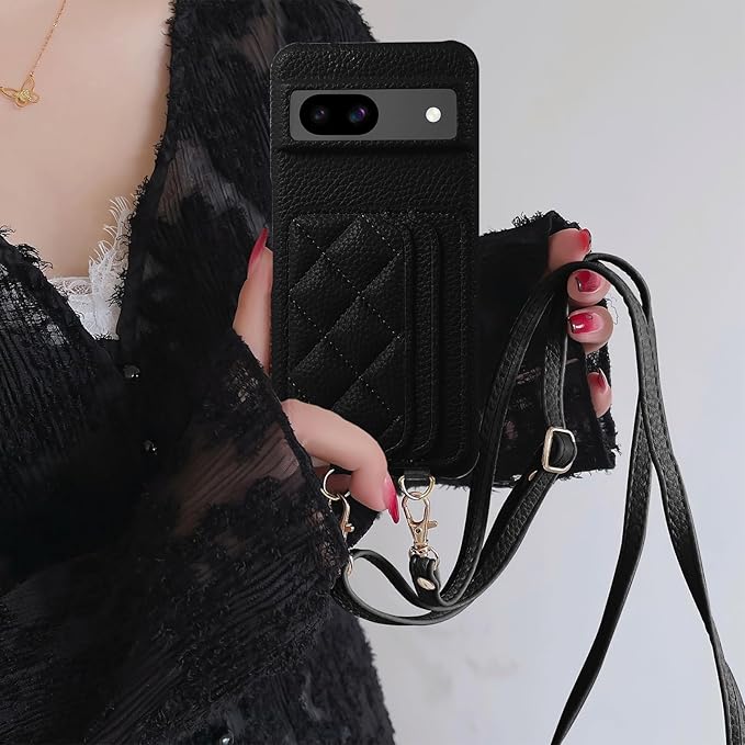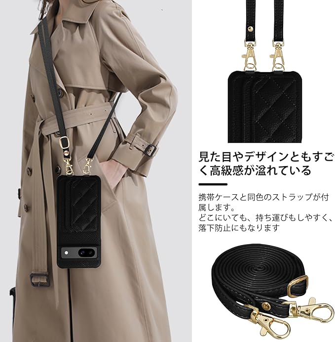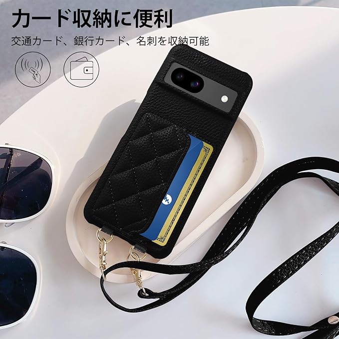 Google Pixel 8a 対応 ケース 高級PUレザー 上質な手触りPixel 8a ケース ピクセル8aスマホケース 斜めかけ 衝撃吸収 耐衝撃 便利 女性 カード収納 汗、指紋や擦り傷防止 手首/肩掛けストラップ付き (長さ調整可能) 可愛い 人気 レディース シュリンクレザー プレゼントPixel 8a 6.1インチ (附ストラップ) ブラック | KAZESHOP