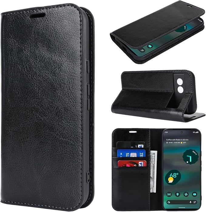 Eastwave for Pixel 8A ケース for Google Pixel8A 手帳型 カバー Phone Case 財布型 収納ポケット 牛革製品 ポケット収納付き 横置きスタンド機能 4色 ブラック | KAZESHOP