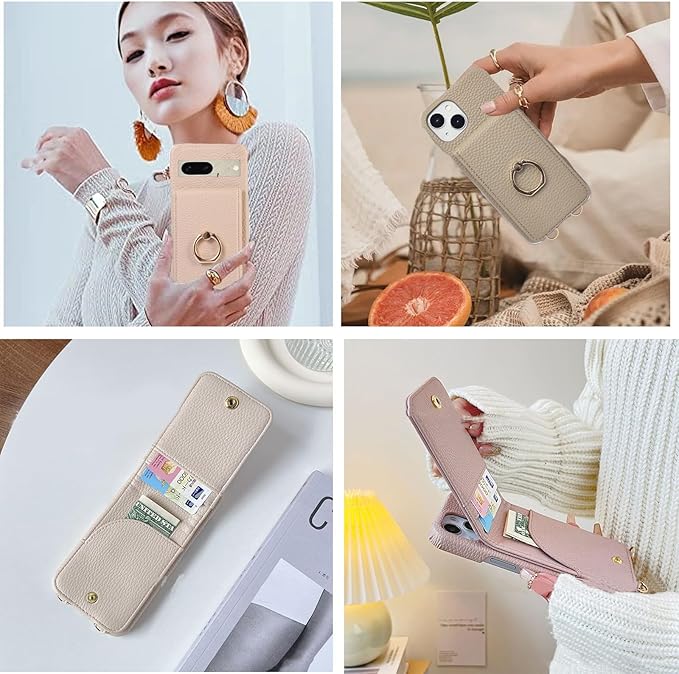 for pixel7 pro 用 ケース ストラップ ショルダー 薄型 かわいい 可愛い スマホケース 携帯 背面手帳型 斜めかけ 肩掛け 首掛け 紐付き 韓国 軽量 カード収納 ショルダーケース おしゃれ 2way 杏色 | KAZESHOP