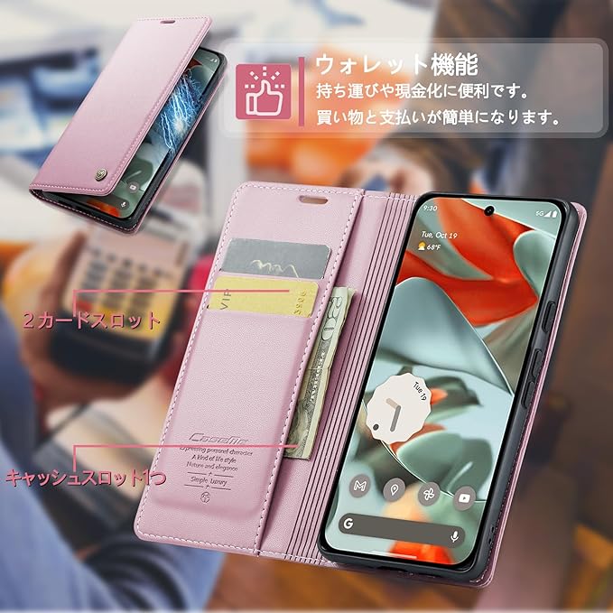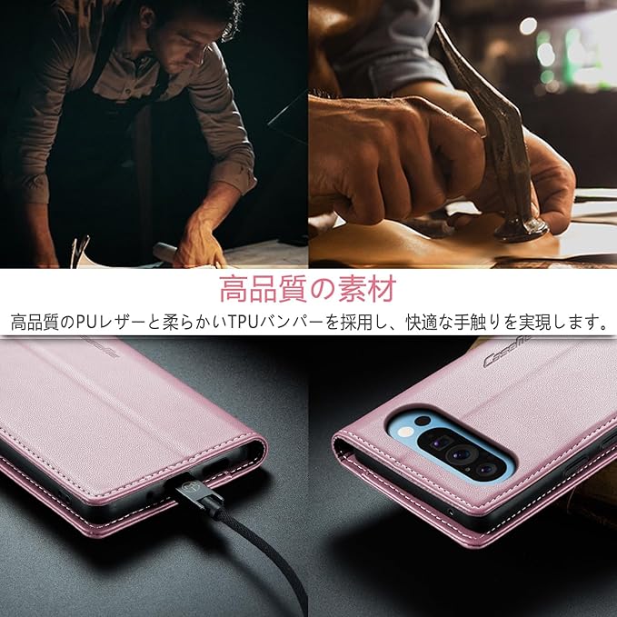 [CeiBand] Google Pixel 9 対応 ケース 手帳型 Pixel 9 Pro 手帳型ケース 防塵 耐衝撃 傷つけ防止 軽量 手作り PUレザー カード収納 RFID磁気防止 財布型 カード入れ マグネット内蔵 スタンド機能 全面保護 耐摩擦 ビジネス風 Google Pixel 9/9 Pro 用 (ピンク) | KAZESHOP