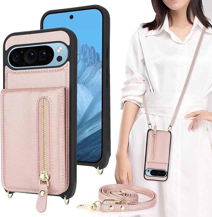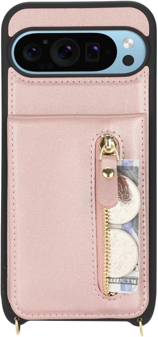 Google Pixel 9 Pro XL ケース ショルダー ストラップ付き ショルダーケース 背面フリップ 上下開 手帳型 Google用 pixel9proXL docomo au SIMフリー softbank 全対応 グーグル ピクセル9プロXL カバー case 適用 iCoverCase カード収納 縦置き スタンド 肩がけ 首掛け 斜め掛け 携帯カバー ピンク | KAZESHOP