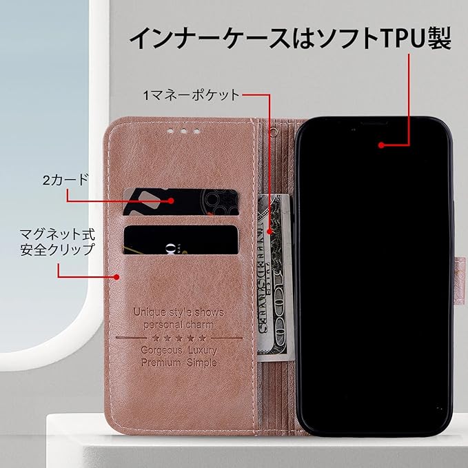 Google pixel7 Pro ケース 手帳型 PUレザー グーグル ピクセル7 プロ ケース カード収納 人気 google pixel 7 Pro ケース 財布型 スタンド機能 pixel7 Pro スマホケース 薄型 横開き 軽量肌触り良い Pixel 7 Pro カバー マグネット式 全面保護 耐衝撃 おしゃれ 人気(ローズゴールド) | KAZESHOP