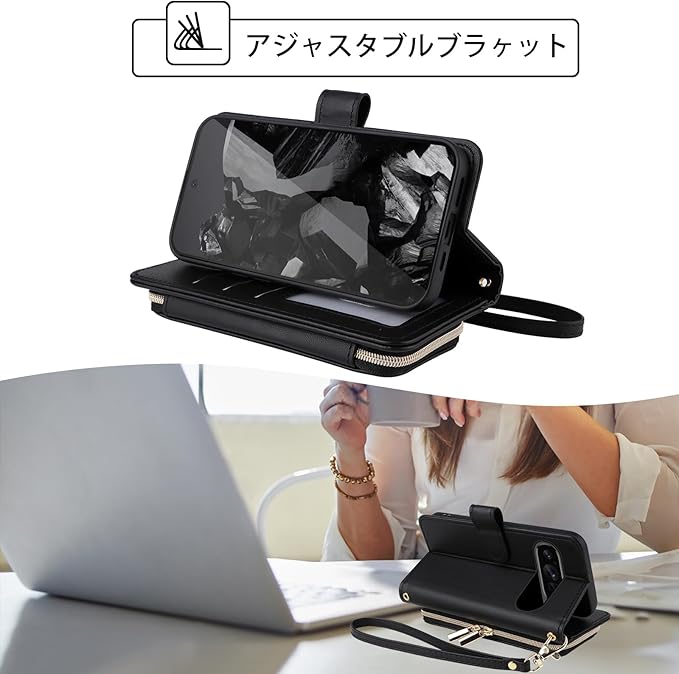 Elisorli for Google Pixel 9 Pro XL 手首/ショルダーストラップ カードスロット ジッパー財布 豪華 PUレザー スタンド ための 携帯電話のカバー 持つ Pixel9 9Pro 9ProXL Nine ウォレットケース しい 大人人気 お洒落 ケース 手帳型 スマホケース カバー スマートフォン 耐久性 耐衝撃 フラップ ストラップホール カード収納 女 ブラック | KAZESHOP