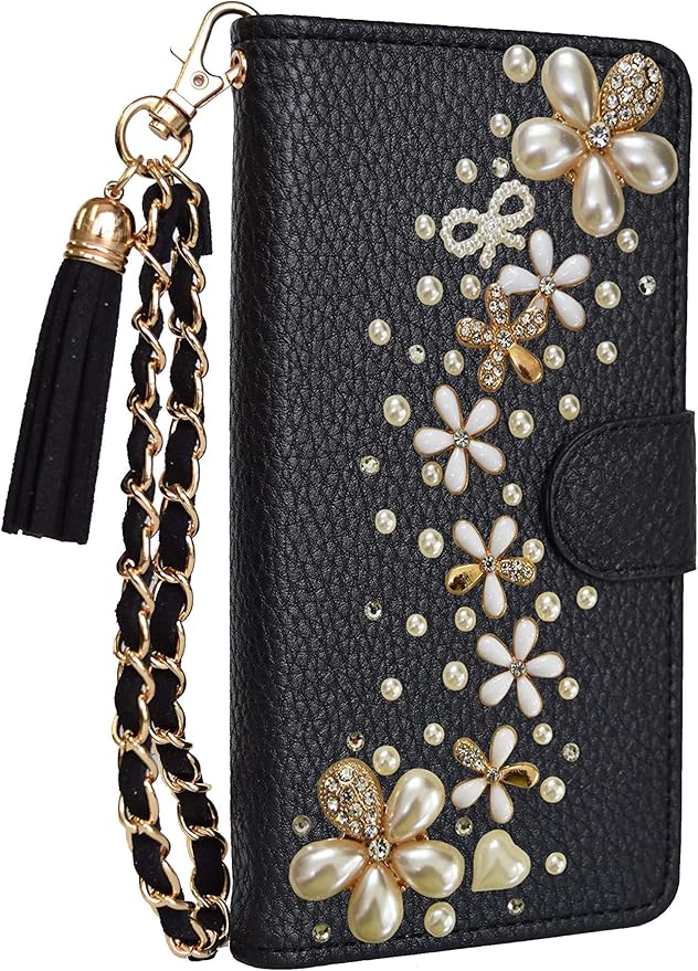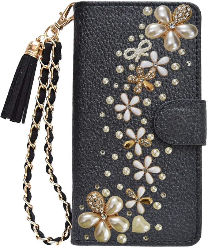 【Salon de M】ケース Pixel 8a 対応 手帳ケース スマホカバー ストーンカバー 鏡付きミラー ダイヤカバー PUレザー 携帯 おしゃれ 人気 花 PUTZ-20-2-1 ブラック | KAZESHOP
