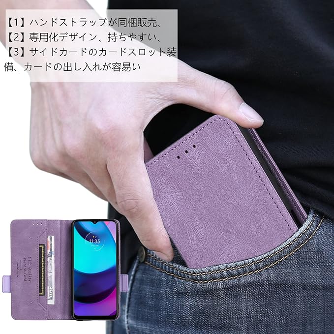 【ポイント②】:ハンドストラップ同梱販売、落下防止機能性が備えます。マグネット内蔵式の留め具でピタッと容易く閉まります。内部の柔軟なTPUホルダーは衝撃吸収の性能が抜群で、万が一の落下発生の時、大切なスマホ本体をしっかり守ることができます。