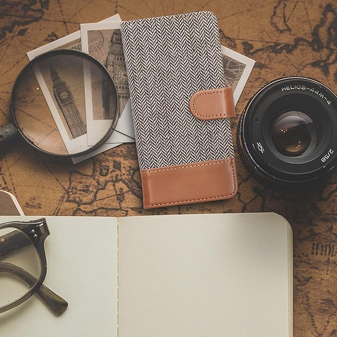 クールなプロテクション: 手帳型スマホカバーは、スマートフォンを保護して汚れや傷、衝撃から守ります。リネン風の生地と合皮レザーのコラボレーションで、あなたのスマホをスタイリッシュにプロテクト。
