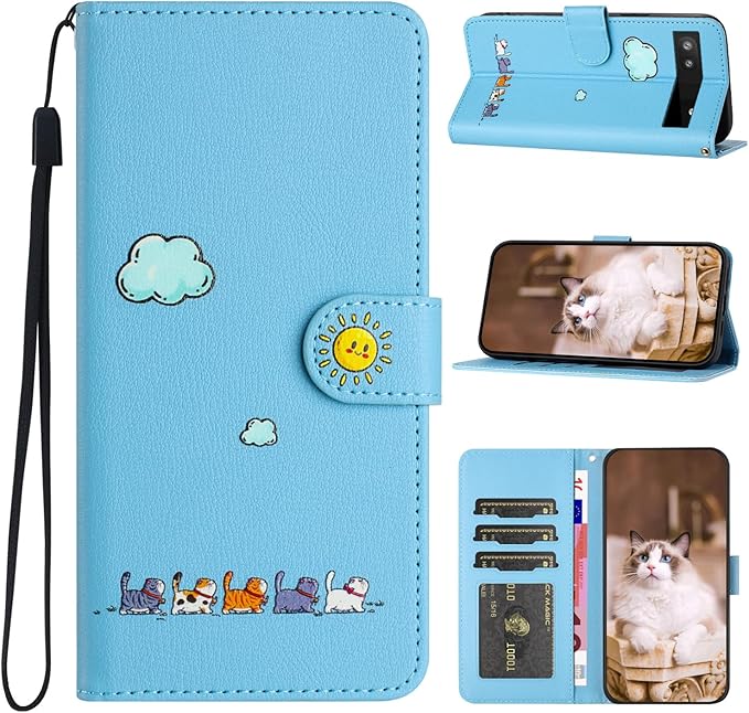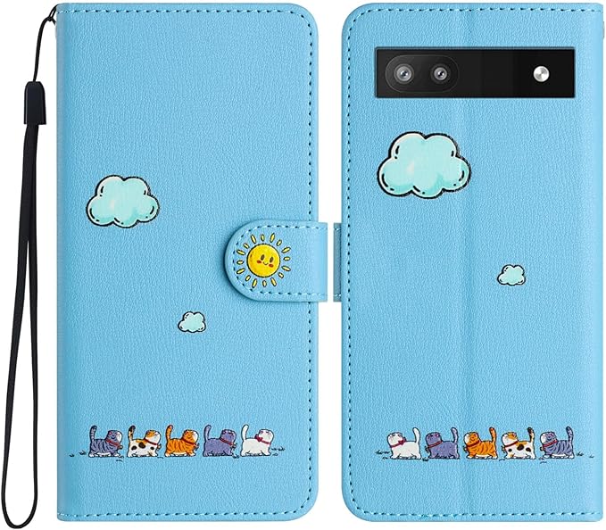 PIXEL 8Aケース 手帳型 グーグルピクセル 8A財布型ケース Pixel 8a携帯 手帳ケース ピクセル 8A ケース かわいい アニメ猫 ネコ薄型軽量 耐衝撃PUレザー素材 縄掛け カード収納 多機能 磁気ボタン 横置きスタンド機能 人気本革調カバー 汚れ防止 ぎゃらくし ア PIXEL 8A スマホケース 全面保護 (ブルー) | KAZESHOP