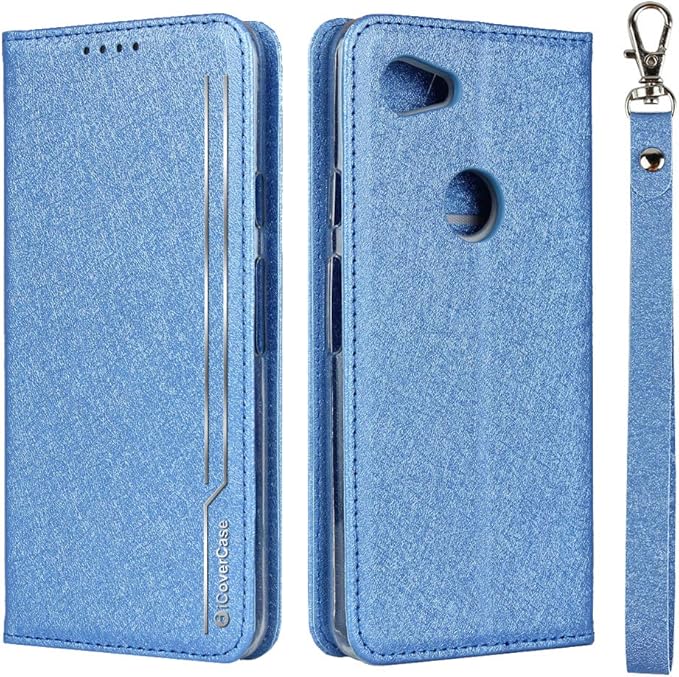 Google pixel 3a ケース pixel3a ケース ピクセル 3a カバー グーグル pixel3a カバー グーグルpixel3a 対応 スマホケース ピクセル3a 手帳型 携帯カバー 【iCoverCase】 内蔵マグネット ベルトなし スマホケース スタンド機能 スプラットホール付き スプラット同梱 表面研磨 スクラブ処理 砂地の質感 ブルー | KAZESHOP