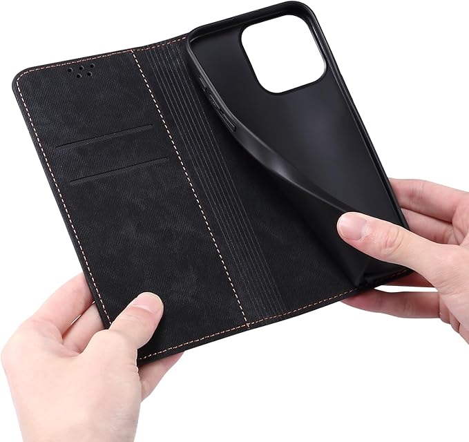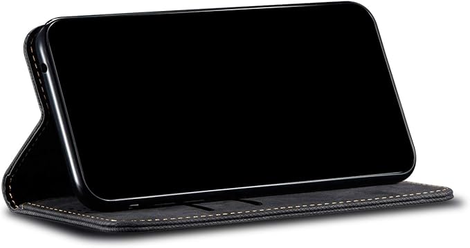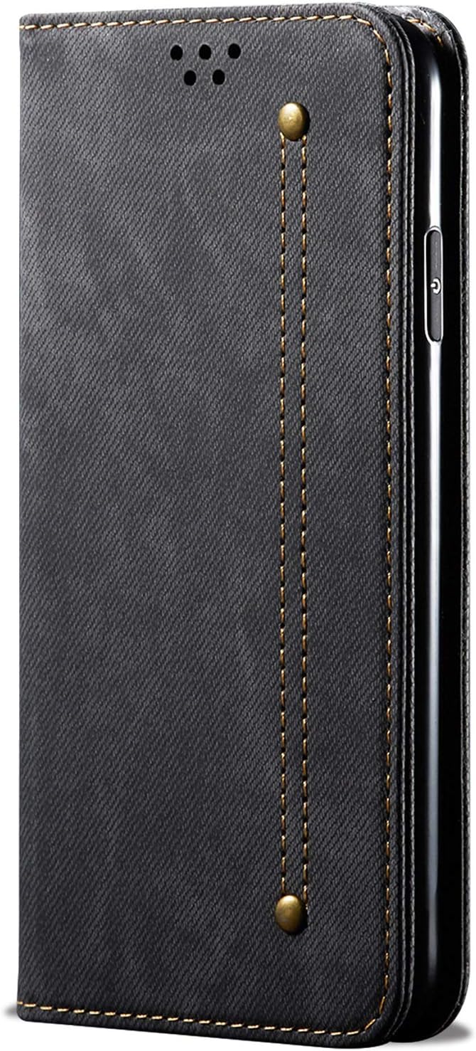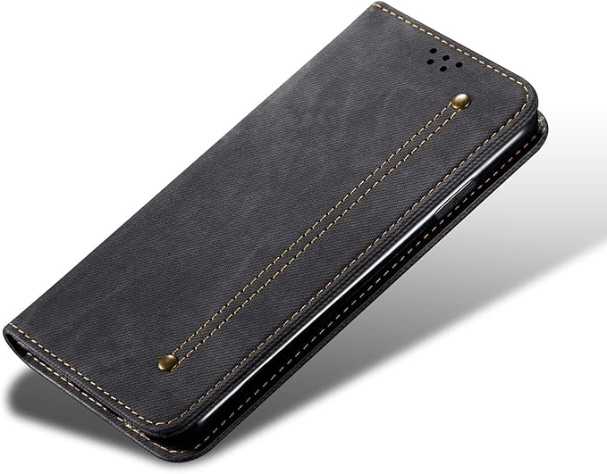 【上質の皮革+TPU】:デニムケース、レトロの表面(高品質のPU皮革)+柔軟性のあるTPU裏面(内部に放熱溝設置)と組み合わせ、衝撃吸収機能が優れたのです、耐衝撃性 スタンド機能、滑り止め性、耐久性保護性、スリムフィット性。スマホ本体への損傷の心配ありません,柔軟性のある熱可塑性ポリウレタン(TPU)とPUレザーバンパー。しっかりの二重保護でスマホ本体を守り抜きます。