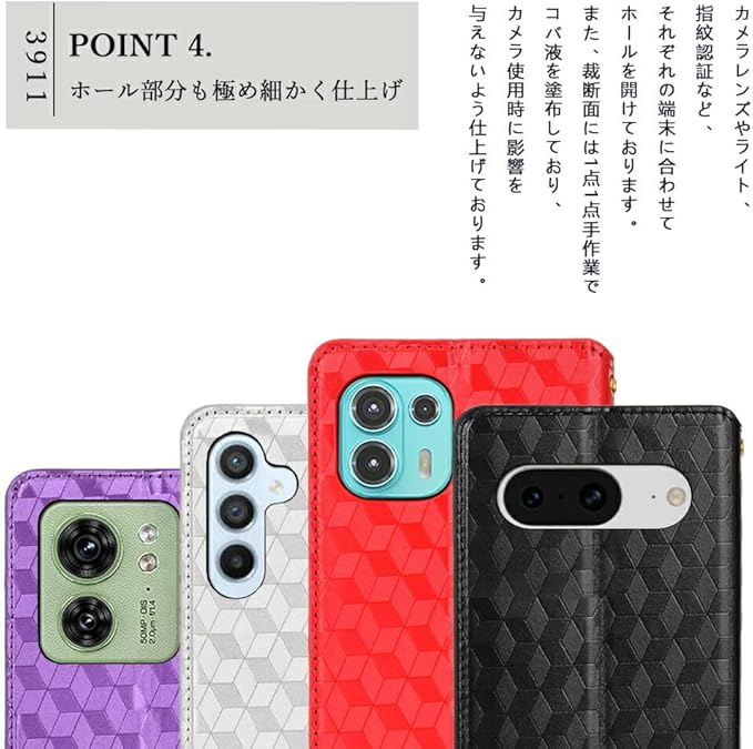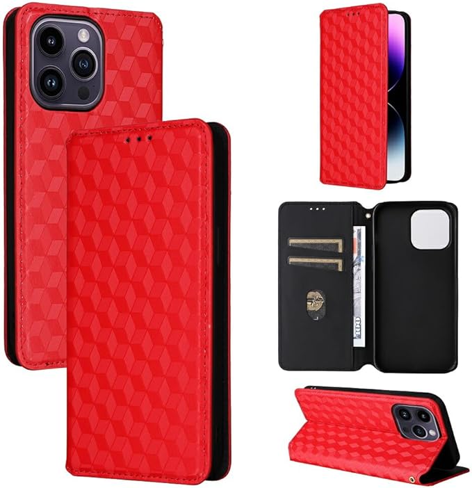 For Google Pixel 7A 対応 ケース 手帳型 3Dチェック光沢柄 スマホケース 横置きスタンド機能付き スマートフォンカバー マグネット内臓式 (GEOMETRIC カラー:レッド RED) | KAZESHOP