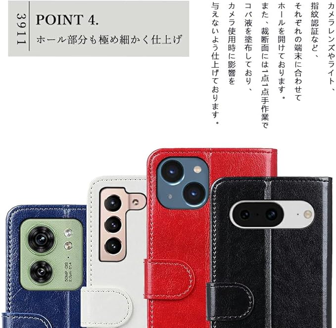 手帳型のデザインは、スマートフォンを全方位から保護し、使い勝手を向上させます。