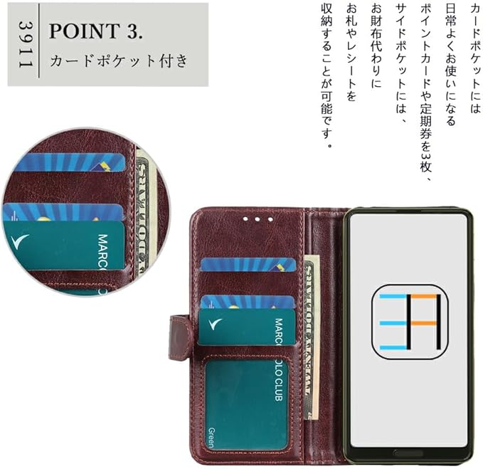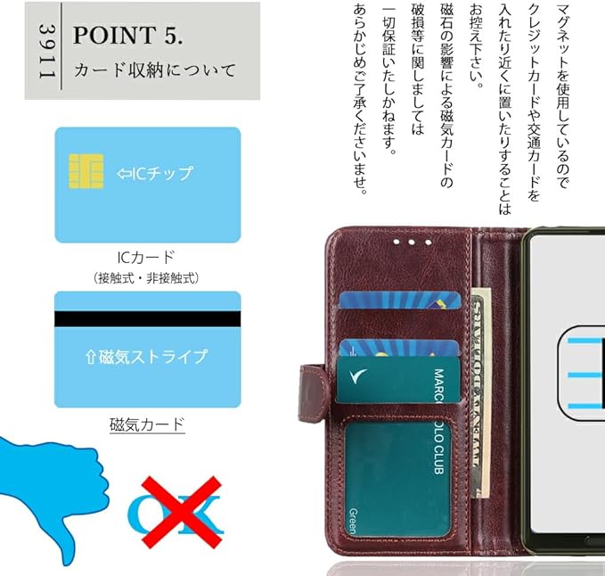 マグネット内臓ベルト式は、しっかりとした装着感を提供し、スマートフォンがケースから外れにくくなっています。