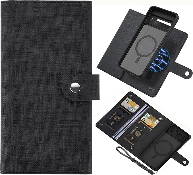 ViLi-GMA Google Pixel 8 対応 2in1 紙幣 カード収納 取外し可能 マグネット 着脱式 分離式 ストラップ付き 2WAY 手帳型ケース 黒 CPIX8-VL-GMA-BK | KAZESHOP
