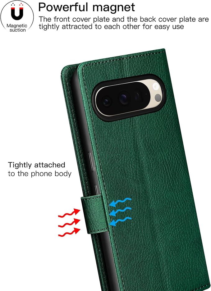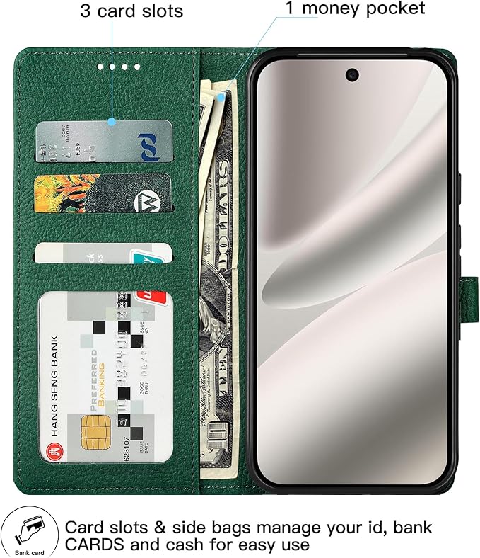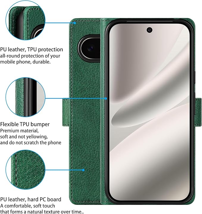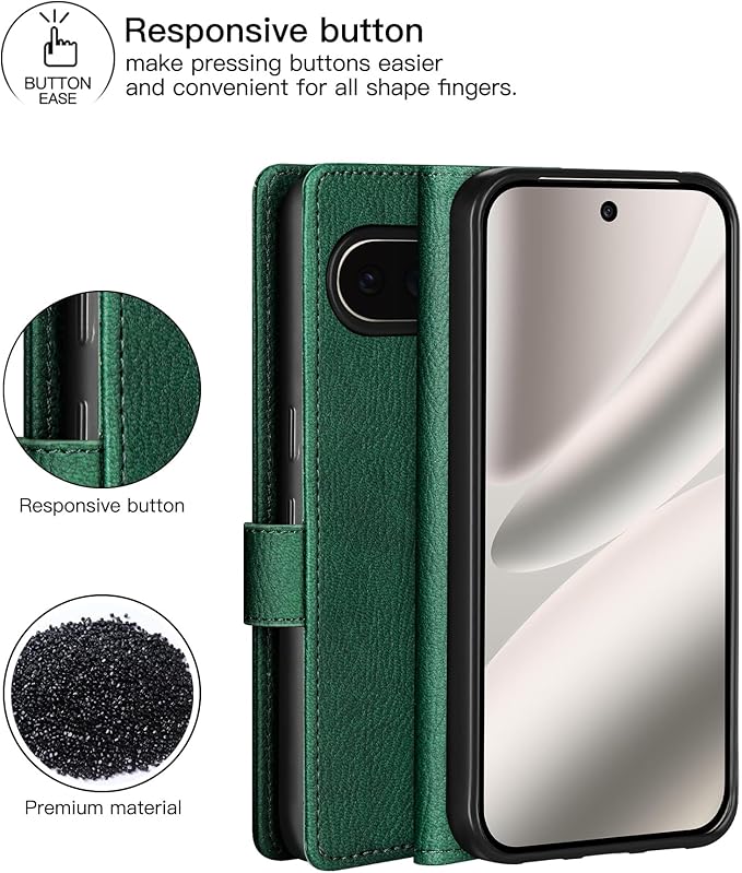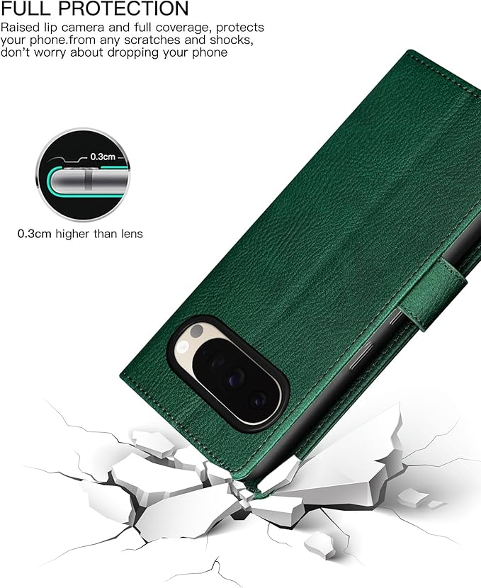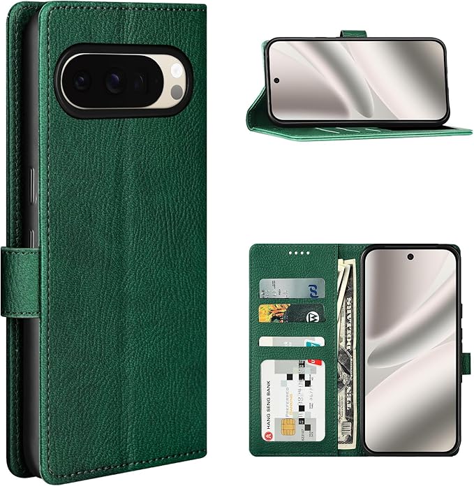 EVADA for Google Pixel 10 Pro XL 財布ケース 本革風 クレジットカード収納 縦型機能 軽量 PUレザー 耐衝撃 全方位保護 人気 ファッション 全方位保護カバー 防汗 指紋防止 傷防止 長持ち 耐衝撃性 (緑色) | KAZESHOP