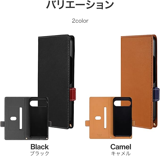 サイドベルトがバイカラーになった遊び心ある手帳型ケース