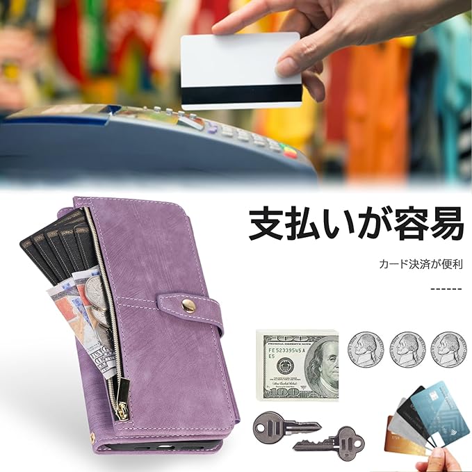 Pixel 8Aケース 手帳型 グーグル ピクセル8a ケース 手帳型 つや消し肌感レザー Pixel 8A携帯カバー マグネット開閉 Pixel 8A カバー 多機能 収納 財布カバー ピクセル 8a ケース カード入れ サイドジッパー 横置きスタンド機能 ケース 縄掛け/肩掛け 保護カバー 全面保護防塵耐衝撃横開き 滑り防止 (パープル) | KAZESHOP