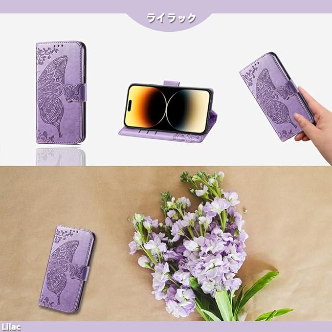 For Google Pixel 7A 対応 ケース 手帳型 ちょうちょ 蝶々柄 横置きスタンド機能付き スマートフォンカバー マグネット内臓式ベルト (Butterfly カラー:ライラック Lilac) | KAZESHOP