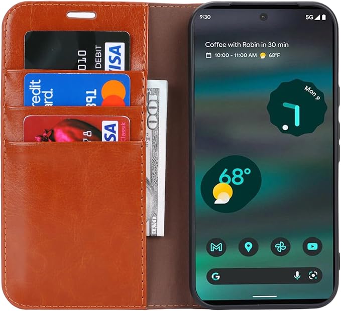 Eastwave 手帳型 財布型 カバー for 用の Google Pixel 8A と互換性のある 収納ポケット 牛革製品 ポケット収納付き 横置きスタンド機能 4色 ライトブラウン | KAZESHOP