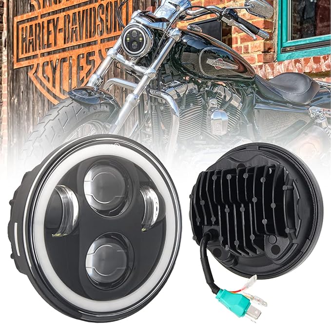 5.75インチ Harley 用 ヘッドライト Hi Lo 12/24V兼用イカリング付き&ウインカー機能付き