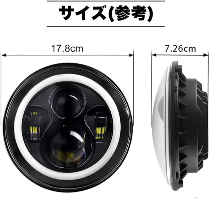7インチ LED ヘッドライト イカリング ラングラー ジムニー ハーレー 等 互換品 純正交換 デイライト プロジェクター ウインカー リング ライト 汎用品 ドレスアップ カスタムパーツ (1個) | KAZESHOP
