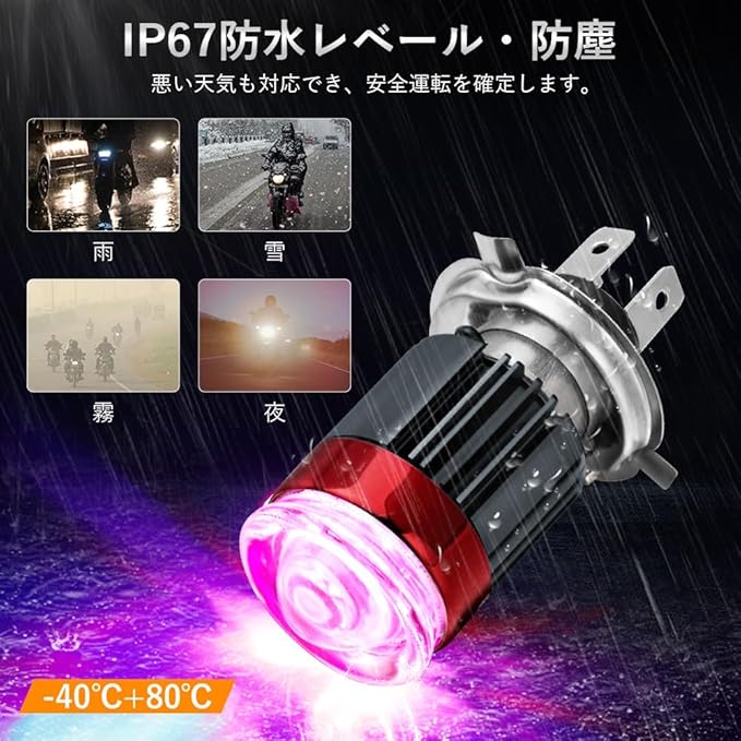 【IP67防水性能抜群・6ヶ月保証】専用に設計されたIP67防水規格のLEDバイクパーツは、日常使用でも安定しており、雨や雪の悪天候でも安全な運転を確保します。-40℃から+85℃の環境下でも即座に起動し、簡単に使用できます。購入後6ヶ月間の保証が付いており、製品に品質上の問題がある場合はいつでもご連絡ください。24時間以内に対応いたします。