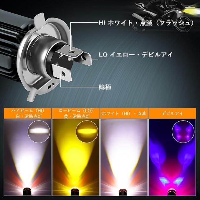 Led H4 ヘッドライト 高輝度 バイク用ヘッドライト HI/LO切替 2色 ホワイト イエロー 一体型 フラッシュ バイクライト デビルアイ付き バイクライト アルミ素材 取付簡単 LEDバルブ DC12V 車用 Ledヘッドライト バイク カスタムパーツ 1個入り | KAZESHOP