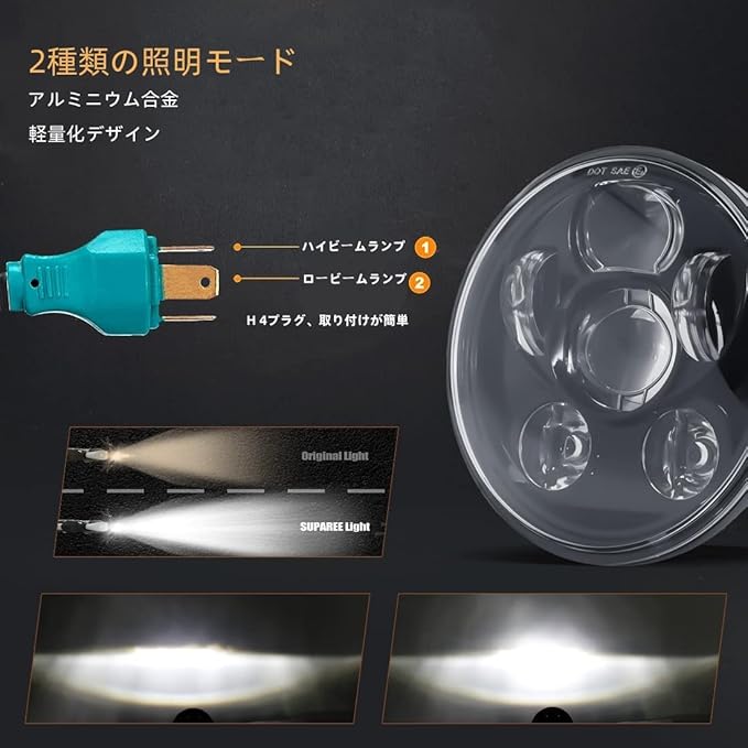 SKTYANTS 5.75 ヘッドライト Hi/Lo切り替え 車検対応 IP67防水 ハーレーダビッドソン883 スポーツスター 純正交換 LEDヘッドライト プロジェクター ブラック | KAZESHOP